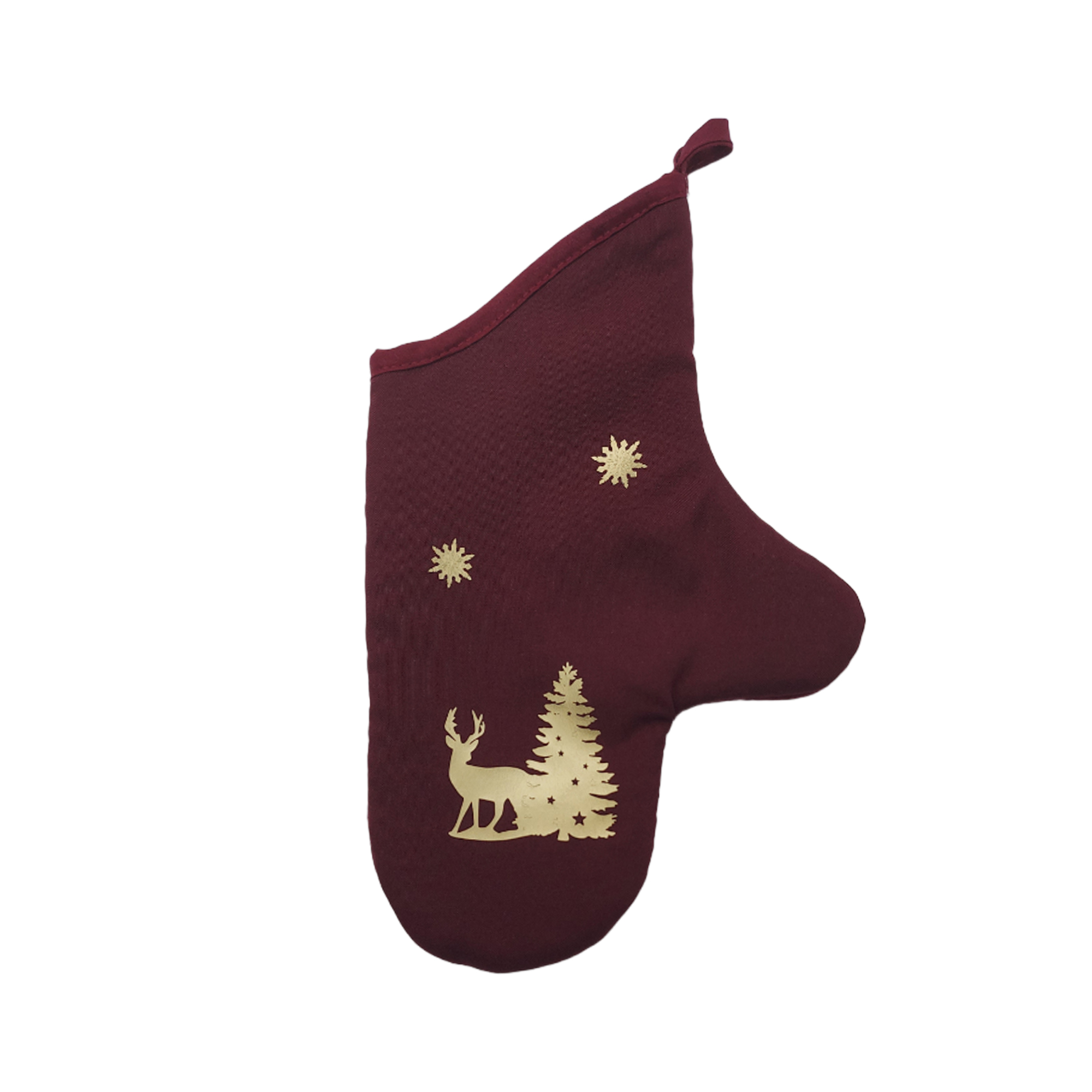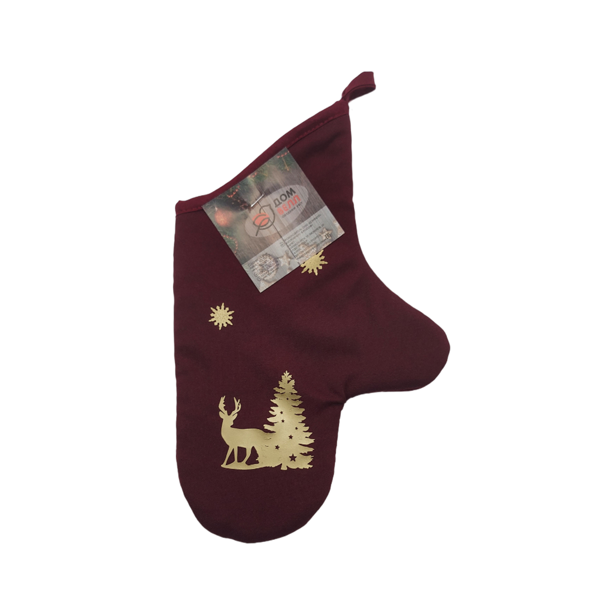 Варежка 35*20 кухонная стеганная (габардин(100%пэ), поплин винный(100%хл.)) ДомВелл Лесной олень