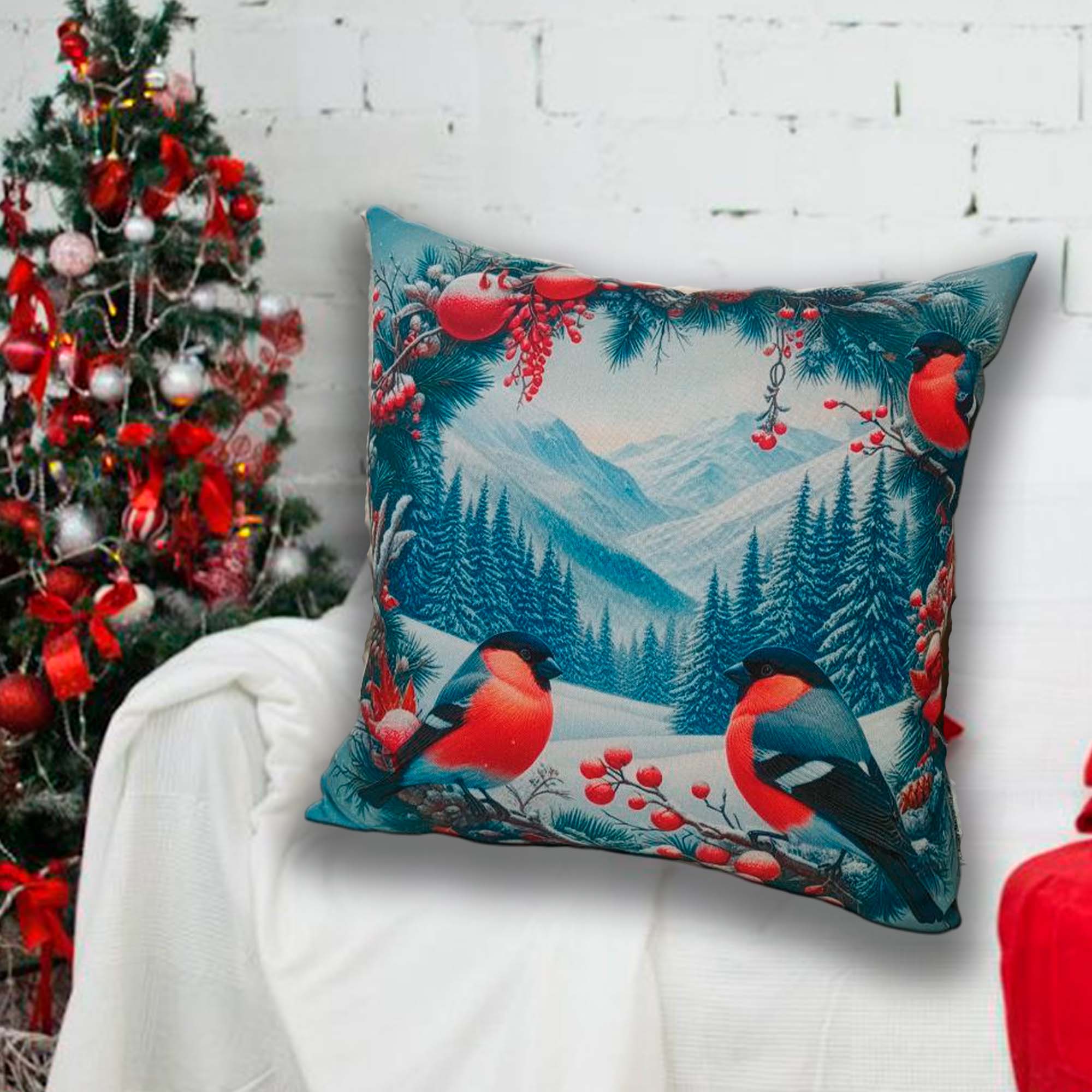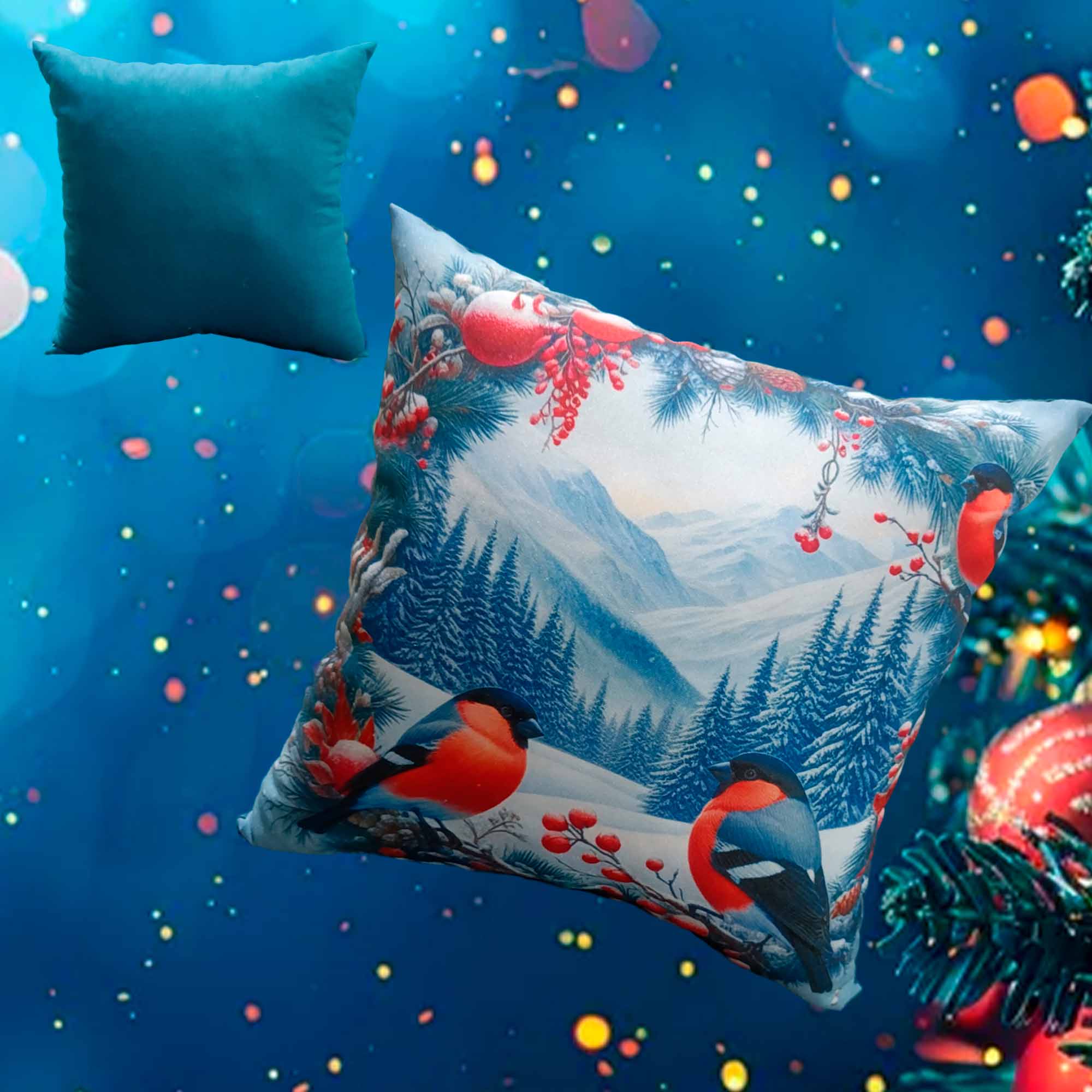 Подушка 35*35 ДомВелл габардин, поплин Снегири