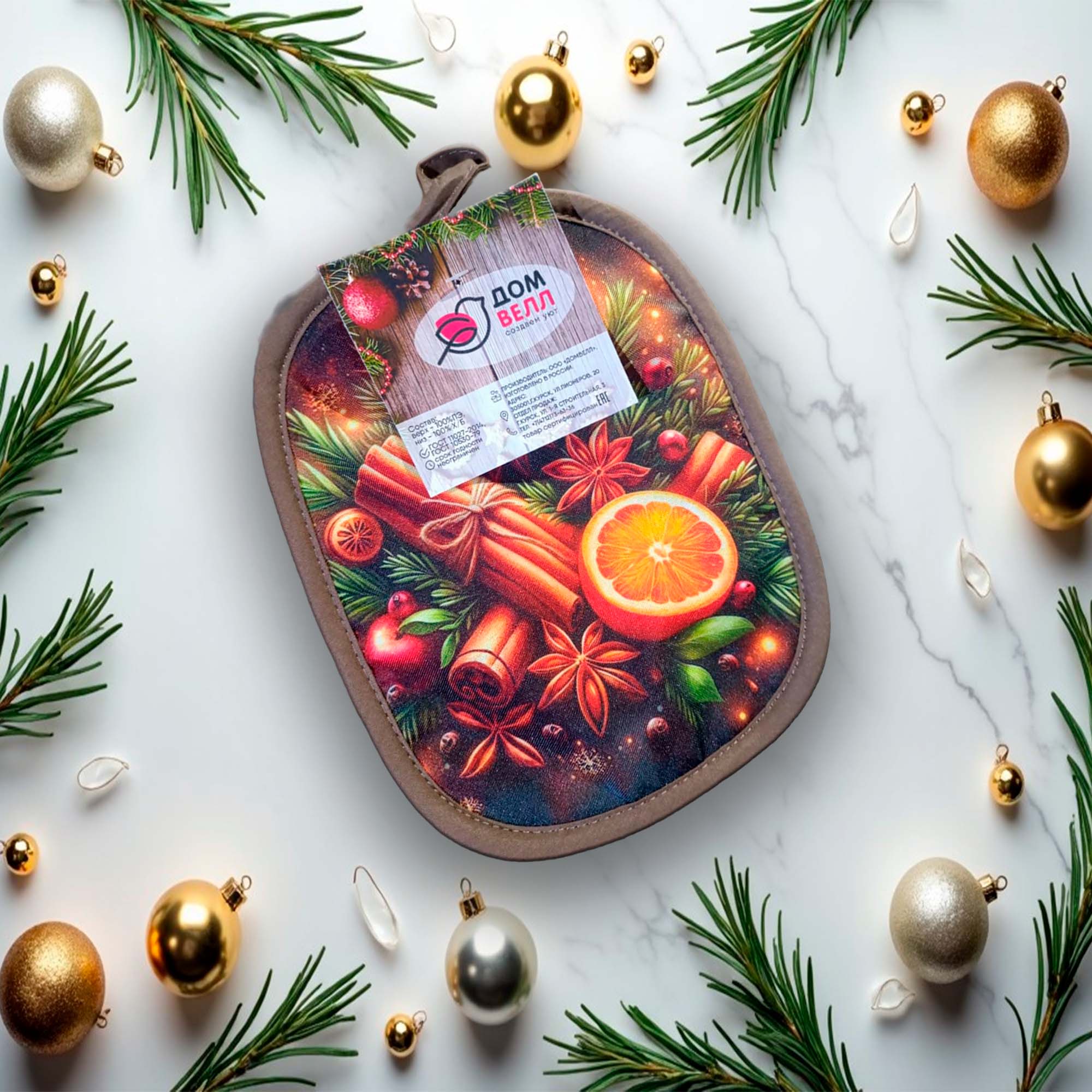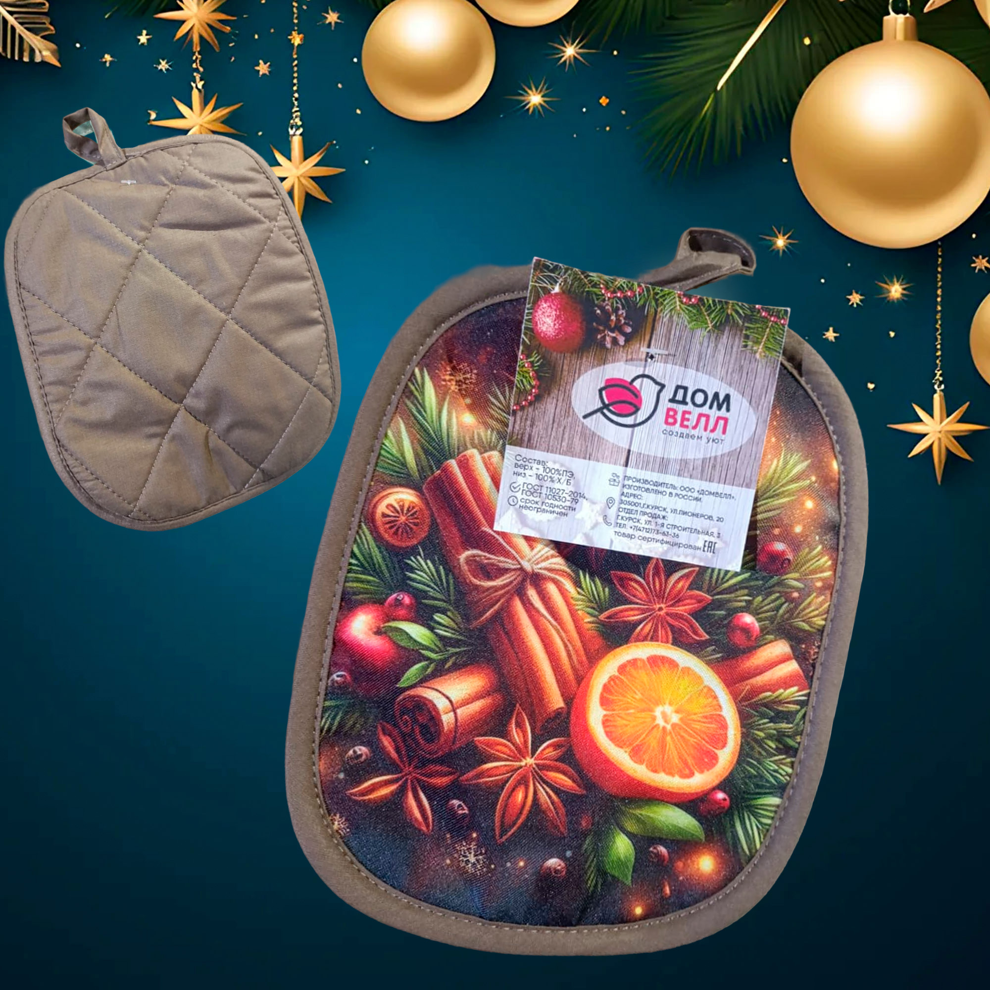 Прихватка 22*18 кухонная стеганная (габардин(100%пэ), поплин (100%хл.)) ДомВелл Глинтвейн
