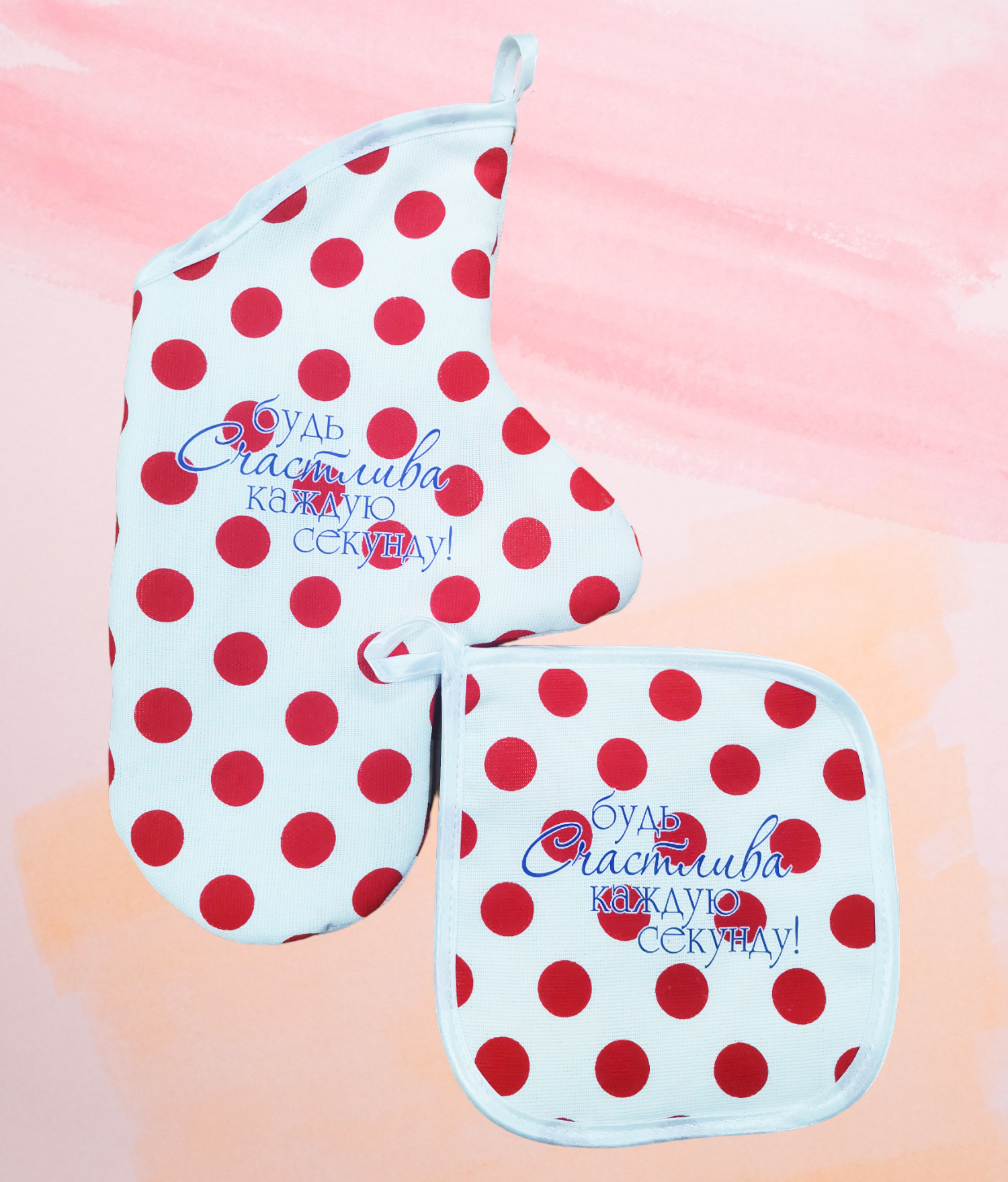 Набор для кухни 2пр. варежка+прихватка ДомВелл рогожка "Будь счастлива"