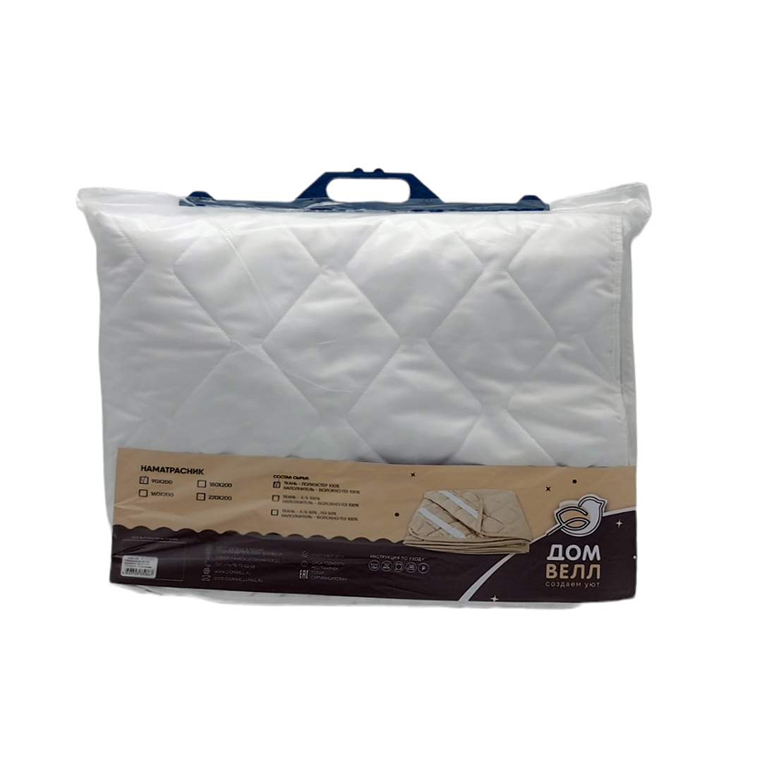 Наматрасник 180*200 ДомВелл защитный, стеганый, на резинках (п/э 70, пакет)