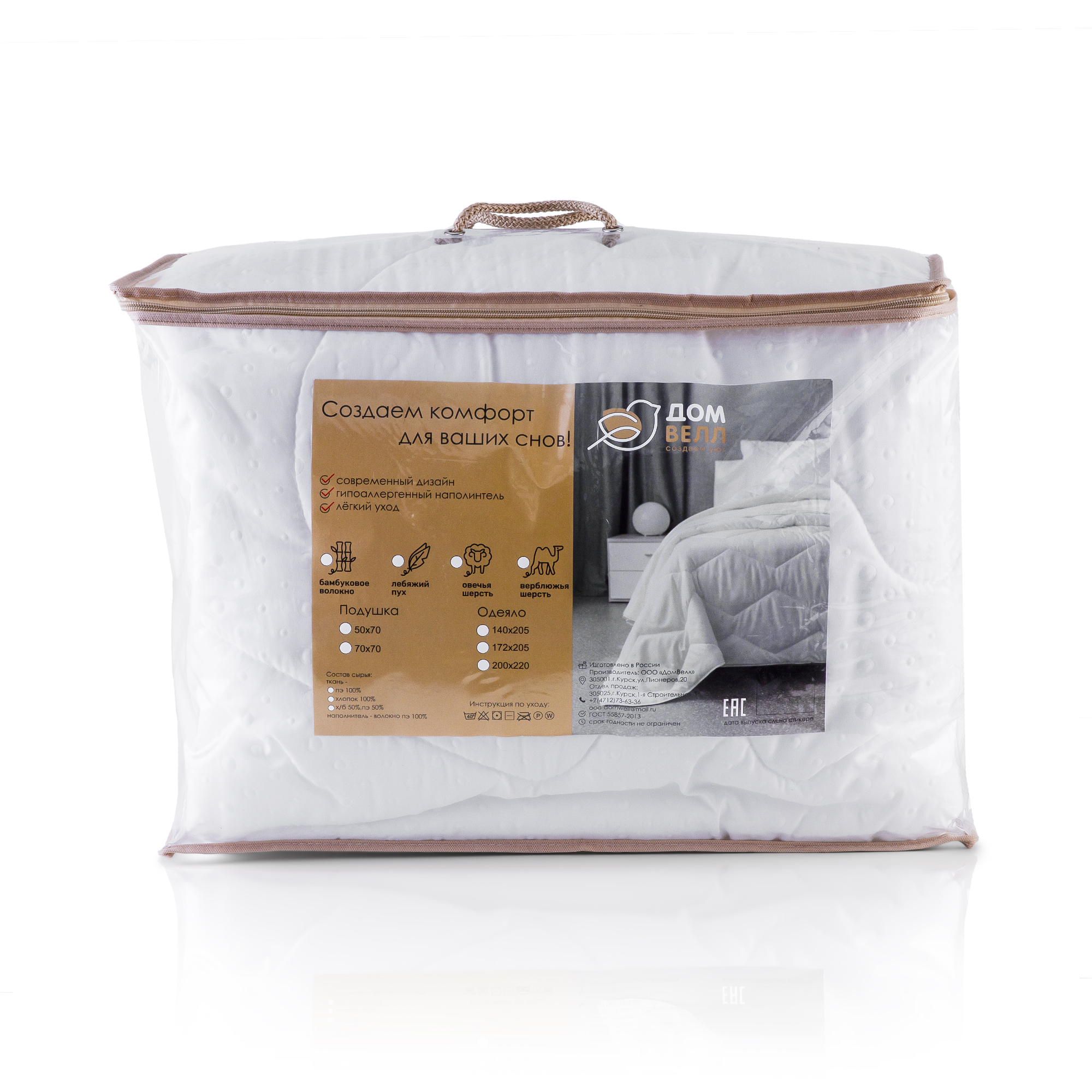 Одеяло 200х220 ДомВелл Лебяжий пух (п/э 90, кант, чемодан) Коллекция Жемчужина