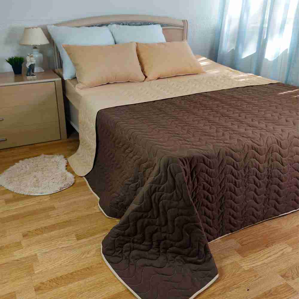 Покрывало стеганое 210*240 ДомВелл двустороннее Поплин Мокко
