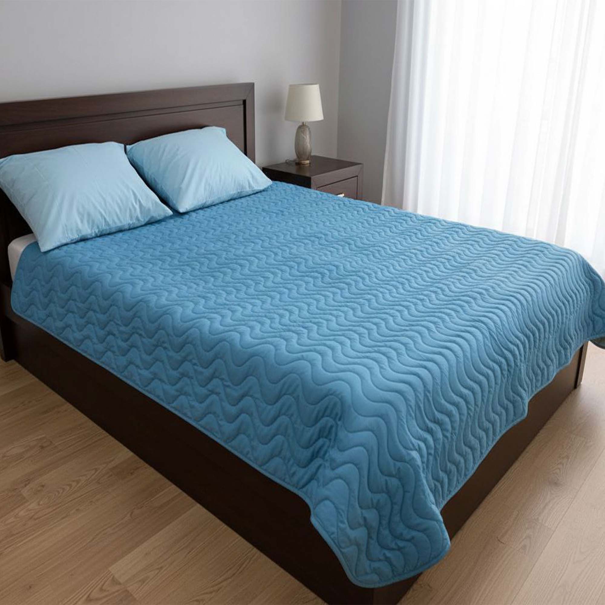 Покрывала стеганное двустороннее из однотонного поплина с закругленными углами, края изделия обработаны косой бейкой из поплина в тон изделия.