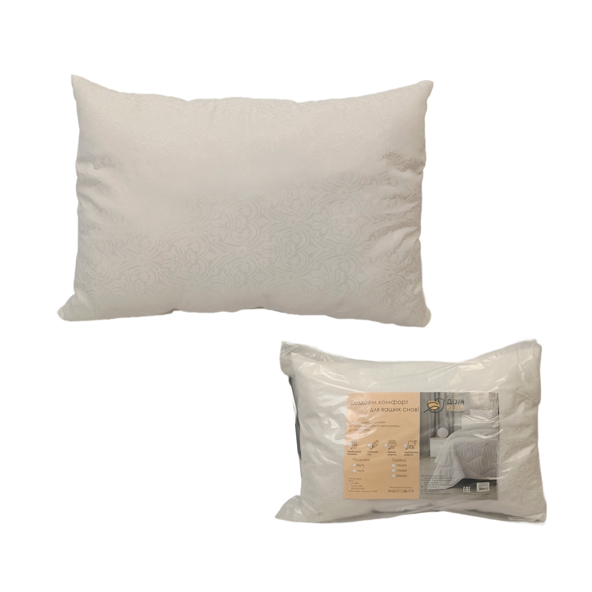 Подушка 50х70 Овечья шерсть (п/э 70, пакет) ДомВелл