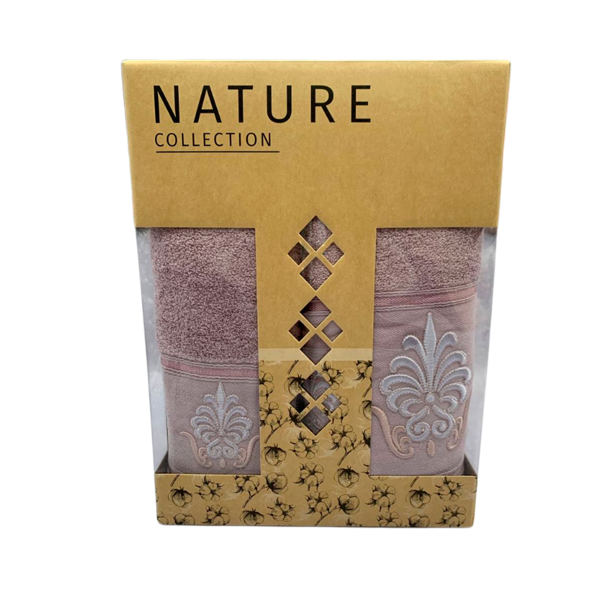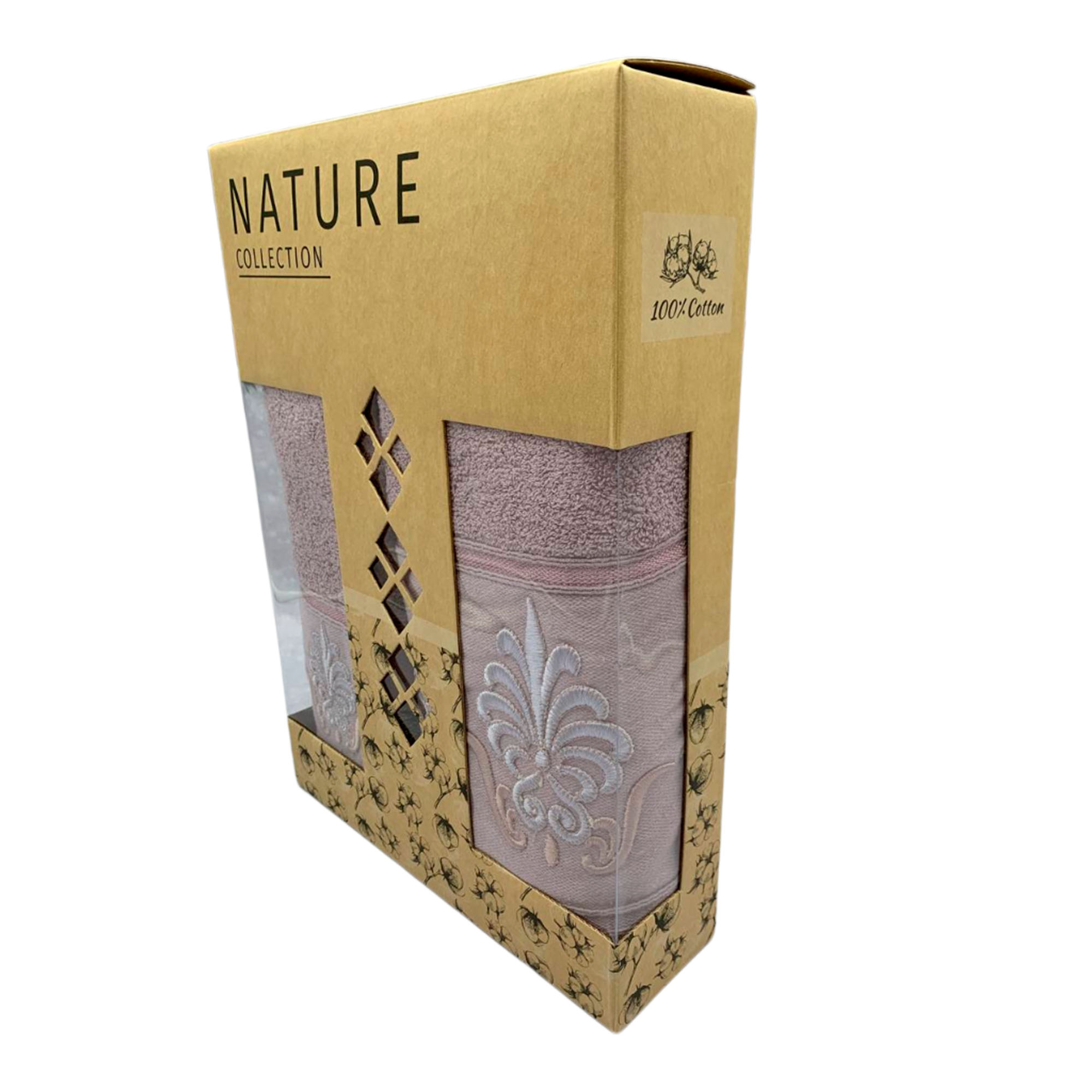 Набор махровых полотенец 2шт. ( 50*90, 70*140) пудровый в коробке